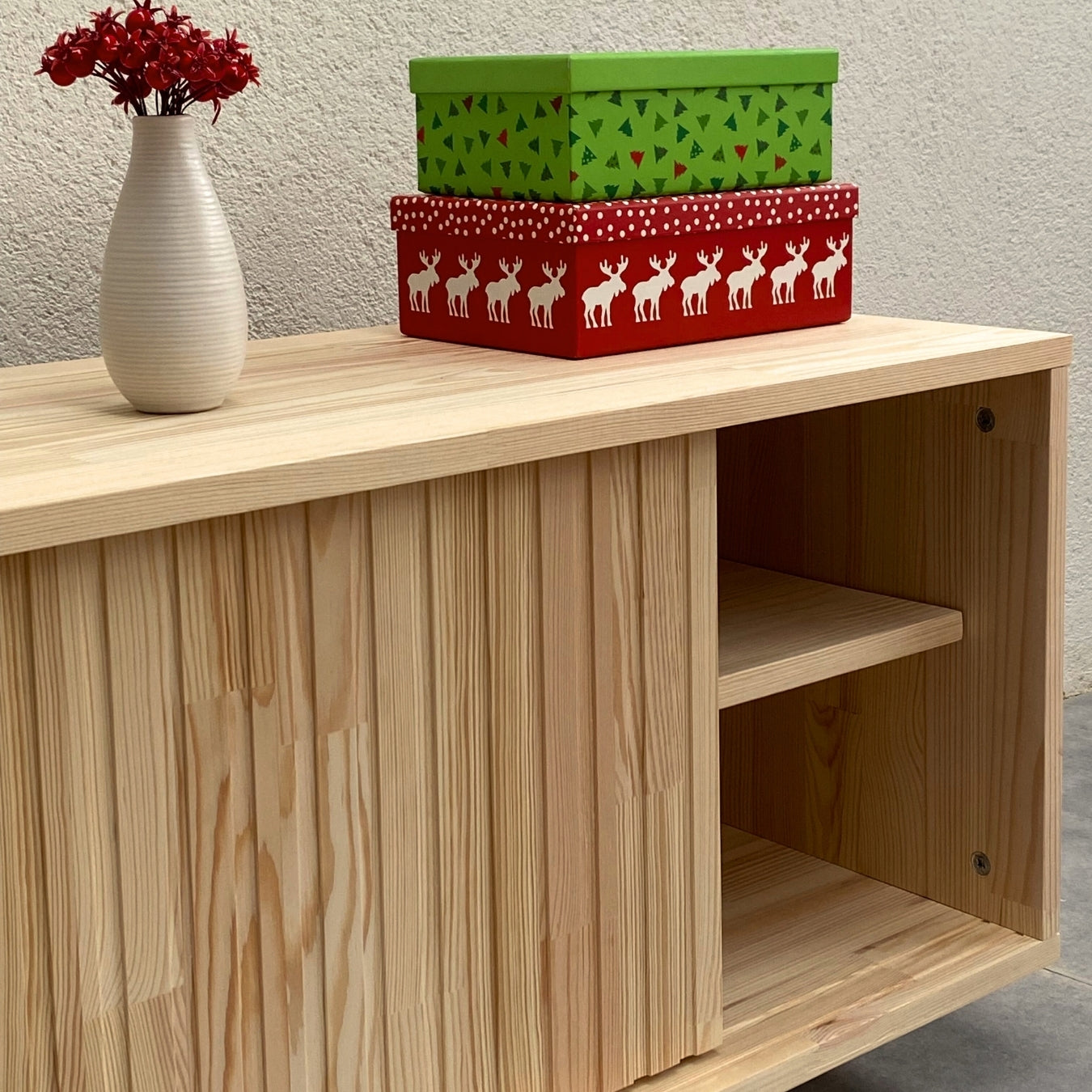 FSC certified, carefully selected first grade solid pine wood. No MDF, no particle board.